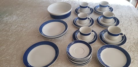 Blå blomst kaffekopper, underkopper, tallerkner, askebægre (peberbøsse er solgt)