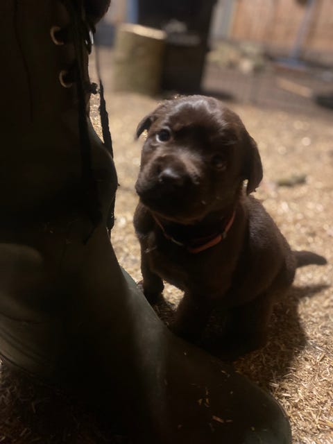 Brune labradorhvalpe af gammeldags type