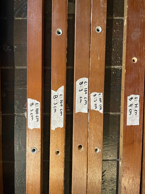 rød massiv træ reol