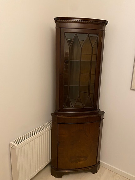 Hjørneskab i mørkt træ