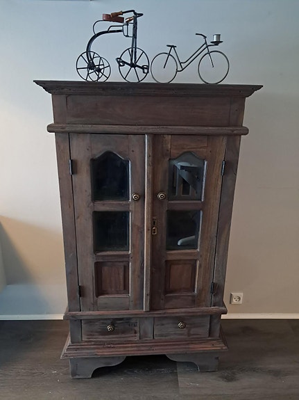 Glasvitrineskab i træ med glaslåger