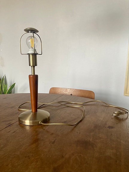 Bordlampe i træ og messing