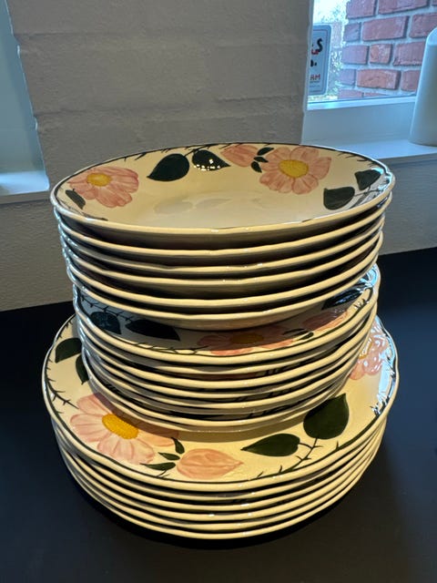B&G Saxon Flower stel – kaffekande, sukker, fløde, tallerkener & underkopper
