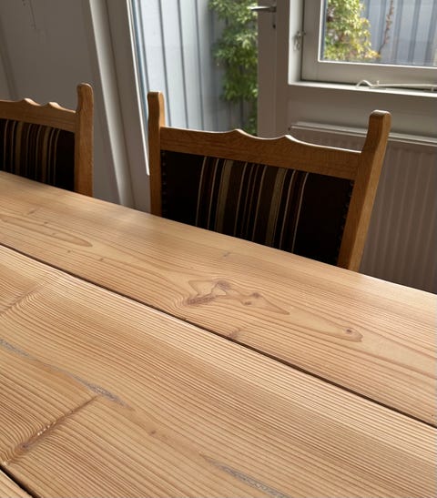 Gammelt bord med 6 stole