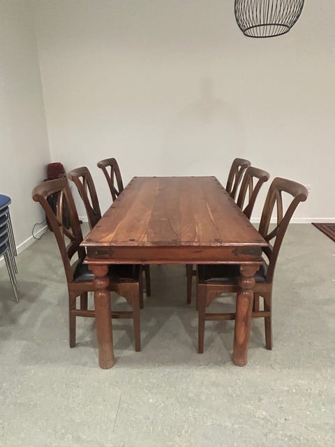 Nyt spisebord med 6 nye stole.