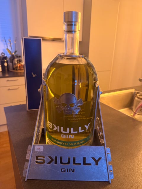 Skully Gin flaske med metalholder