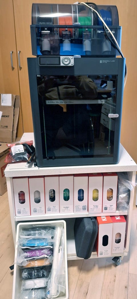 3D-printer med filament og tilbehør