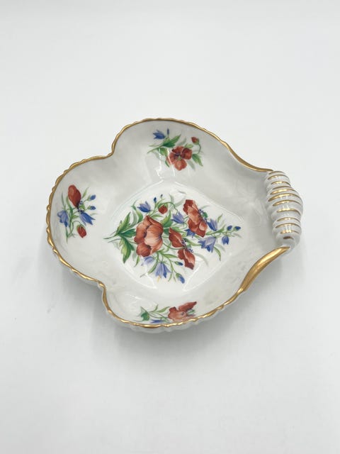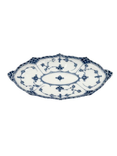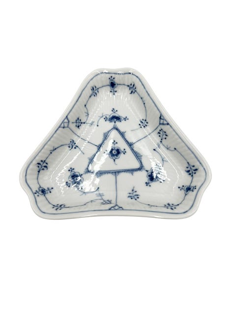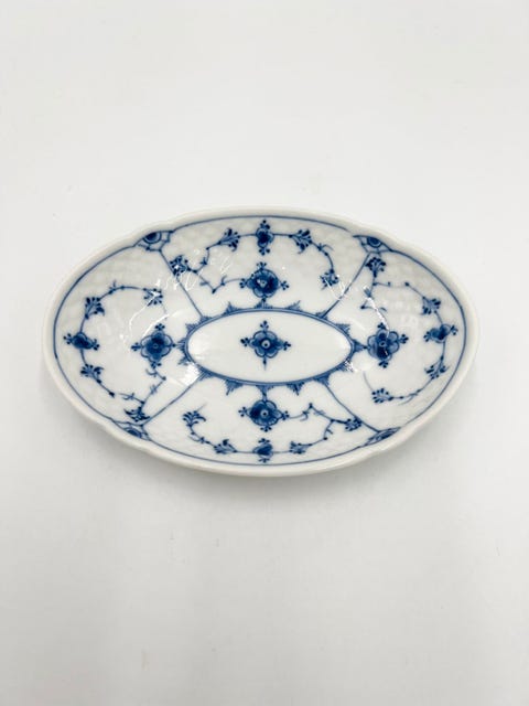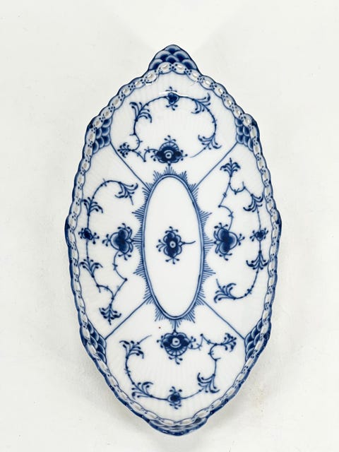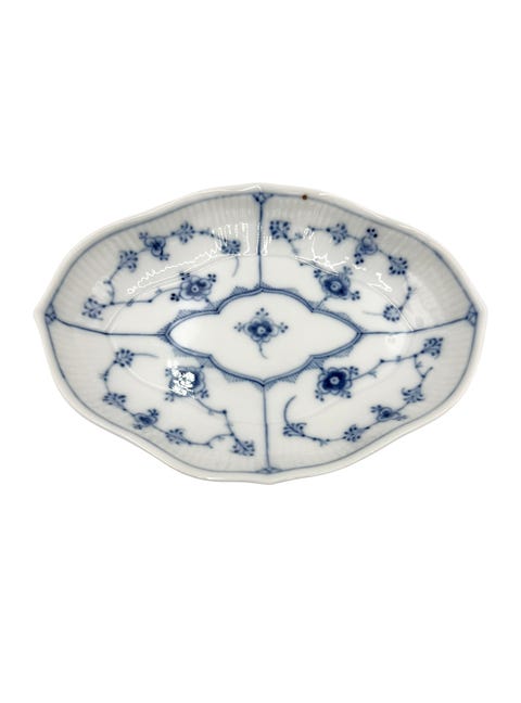 Sjælden bladformet fad / asiet i Musselmalet Halvblonde fra Royal Copenhagen.