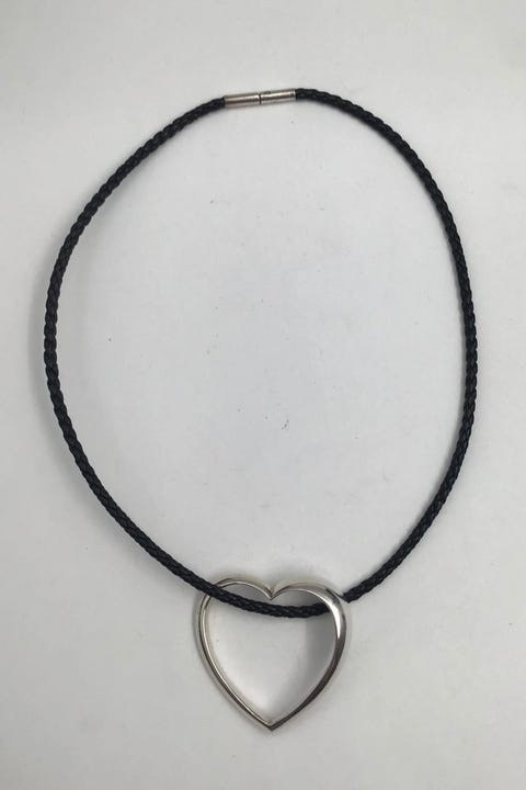 Georg Jensen Sterling Sølv Hjertevedhæng No. 600B og flettet lædersnor VI SENDER