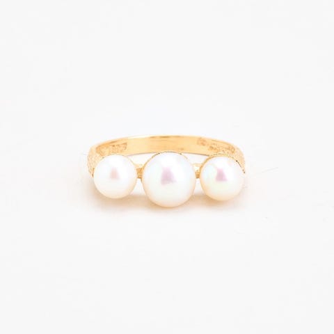 Perlering i 14K guld, Str. 55-Guld