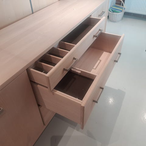 Kommode med skuffer. Høyde på skuffer 7-8 til 10 cm.