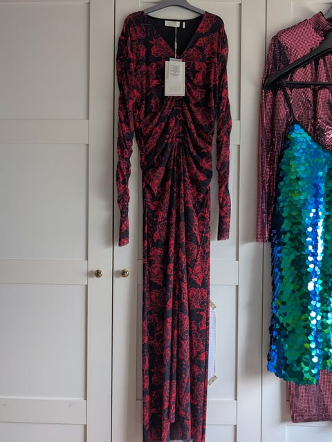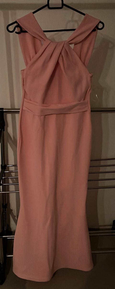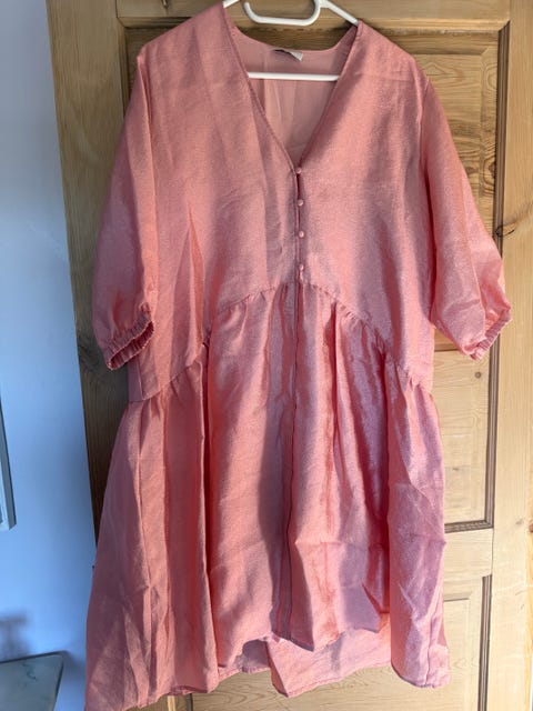 Fantastisk fest kjole 👗 a-formet og falder virkelig smukt. Gl. rosa med glimmer
