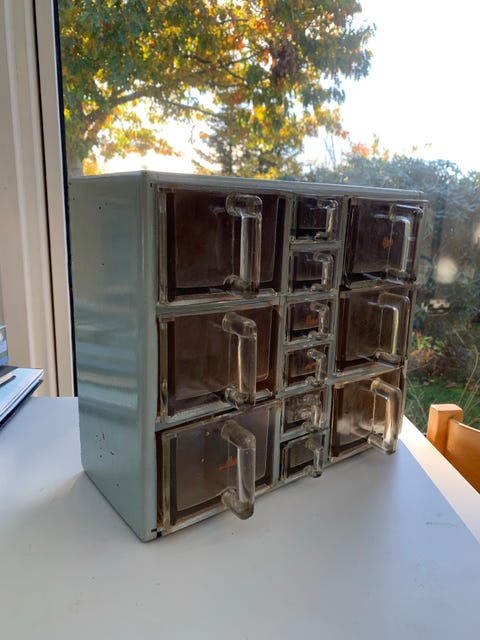 møbel med skuffe og hylde.