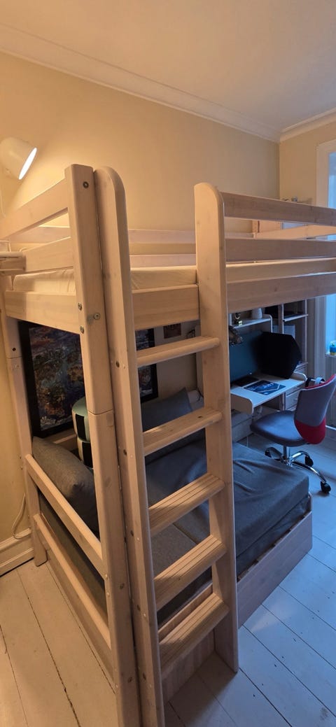 Høj børneseng inkl. madras