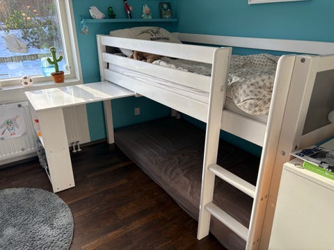 Halvhøj seng med udtræksskrivebord
