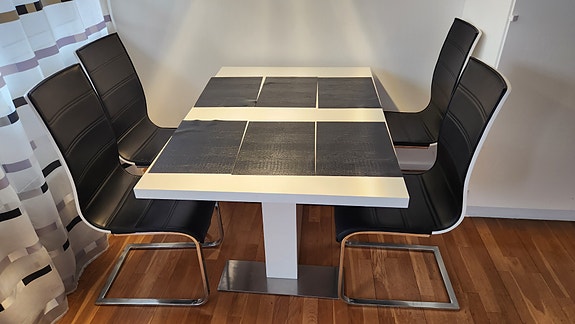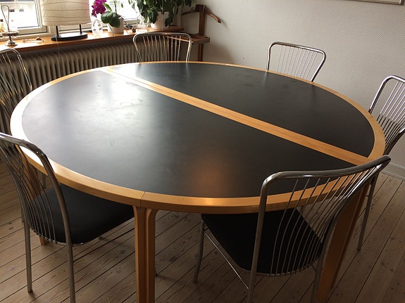 AJ 3130 "Grand Prix" stole (10 stk.) sort ask / krom + Lau Lauritsen spisebord