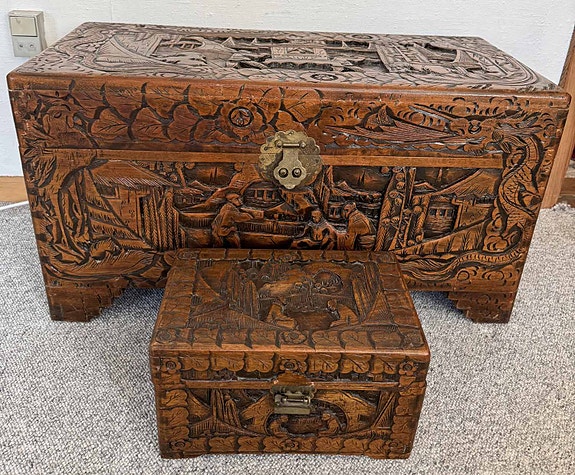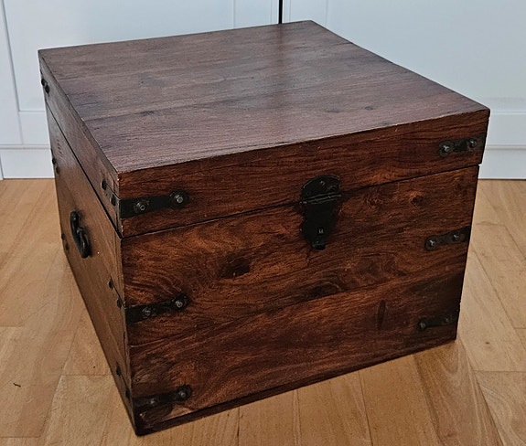 Trækiste i mørkt træ