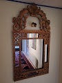Spejl med udskåret træramme