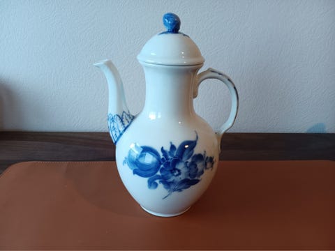 Royal Copenhagen kaffekande porcelæn hvid med blomstermotiv og gulddekoration