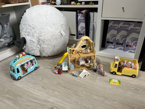 Sylvanian Families med skolebus, børnehave bus og børnehave sæt med figurer