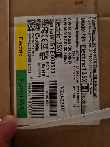 ELITE SCREENS 125XH H:156 B:277 16:9