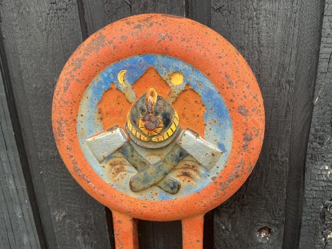 Gammelt emblem I støbejern,