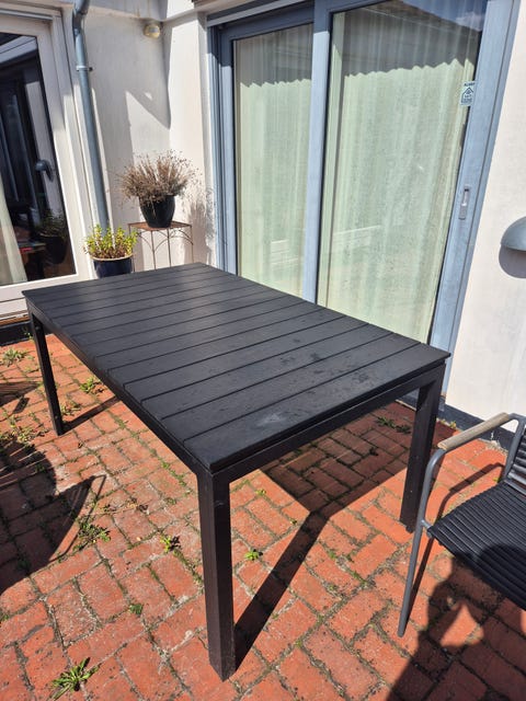 Rund sort havebord med 6 havestole
