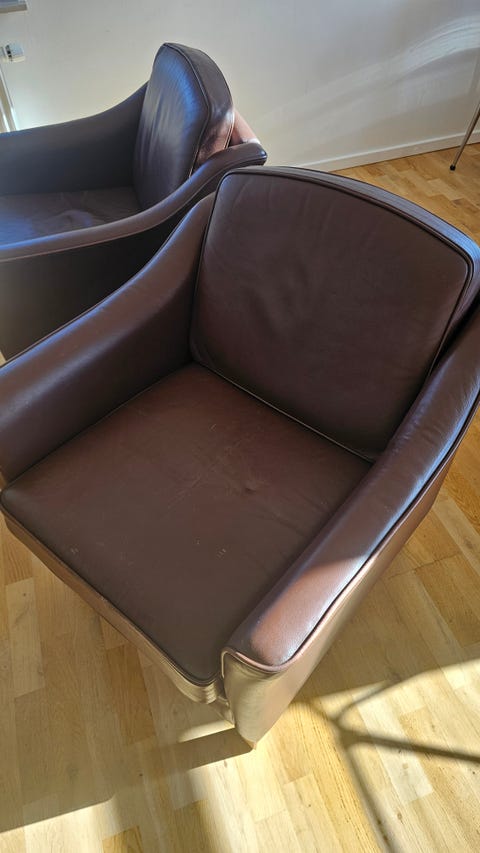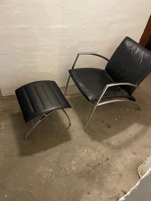 Læder lænestol med skammel