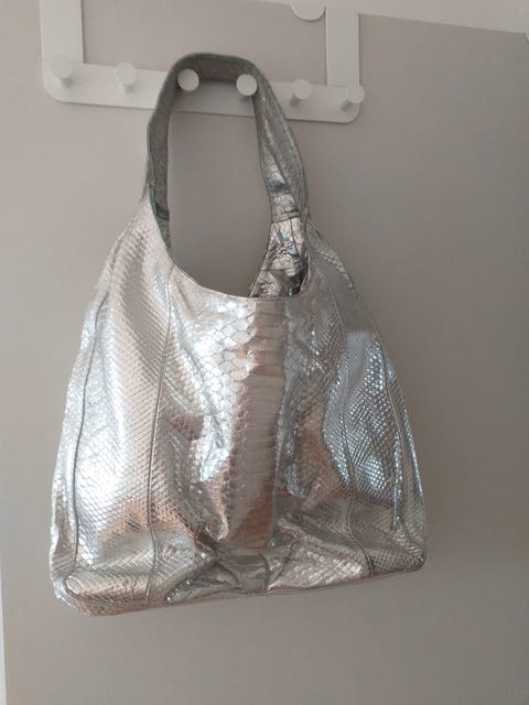 Sølvfarvet slangeskindstaske