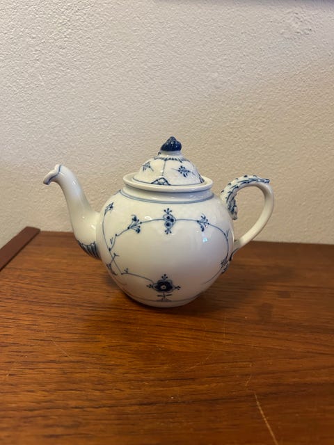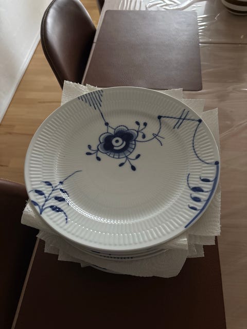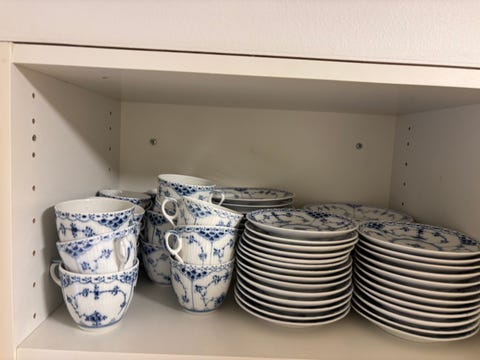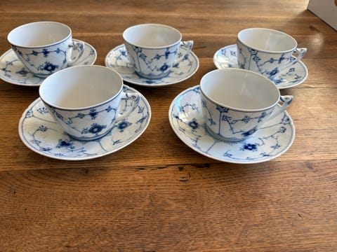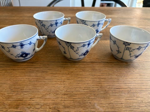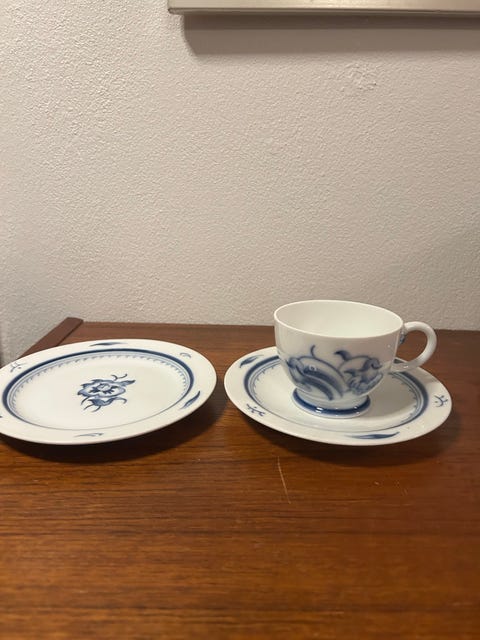 Bing & Grøndahl blå nellike kaffekop og kage tallerken i blå og hvid porcelæn