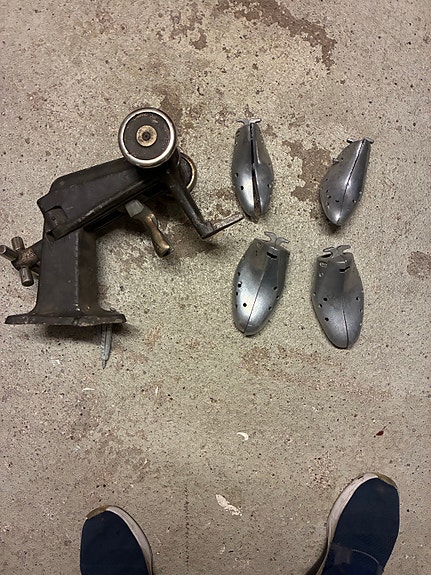 Vintage skomager skoblokker i metal.