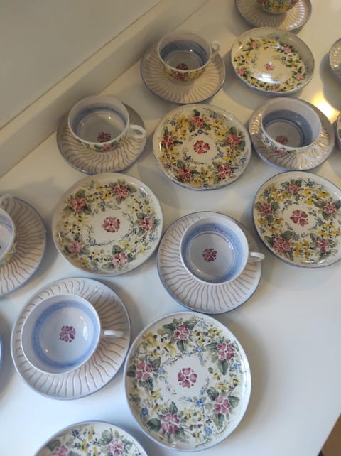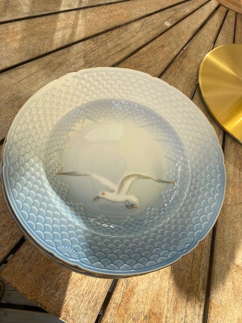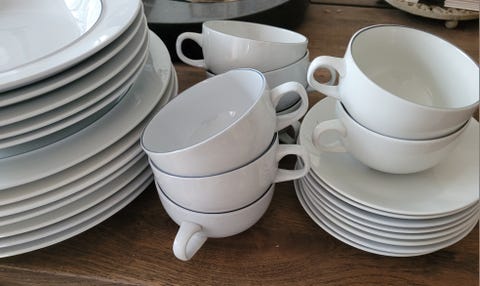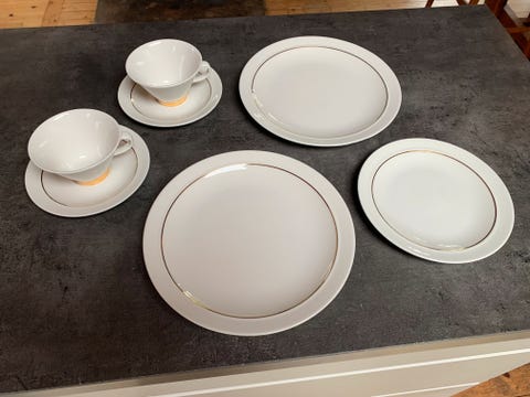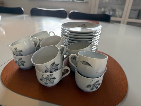 Bing & Grøndahl Kaffestel Løvfald med Kopper og Tallerkener Hvid med Bladmotiv