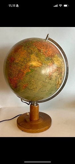 Globus lampe med træ fod