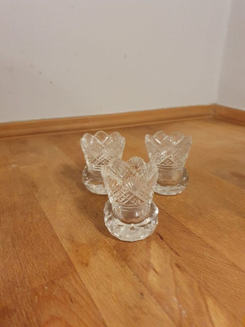3 små vaser i slebet glas