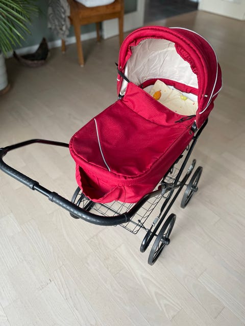 Dukkevogn med Rød Stoff