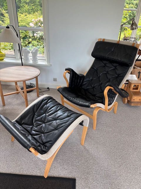 2 lave lænestole Mogens Hansen 195. Brun læder købes