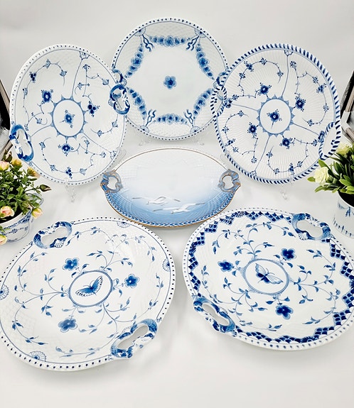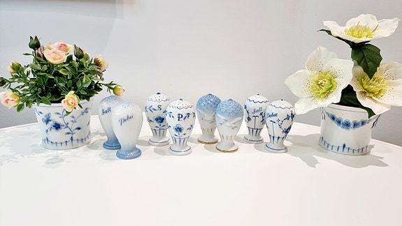 Royal Copenhagen blå Tranquebar smørkrukke med låg og fast underfad. Nr. 11/1263