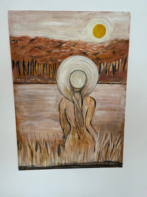 Maleri af kvinde med hat i natur