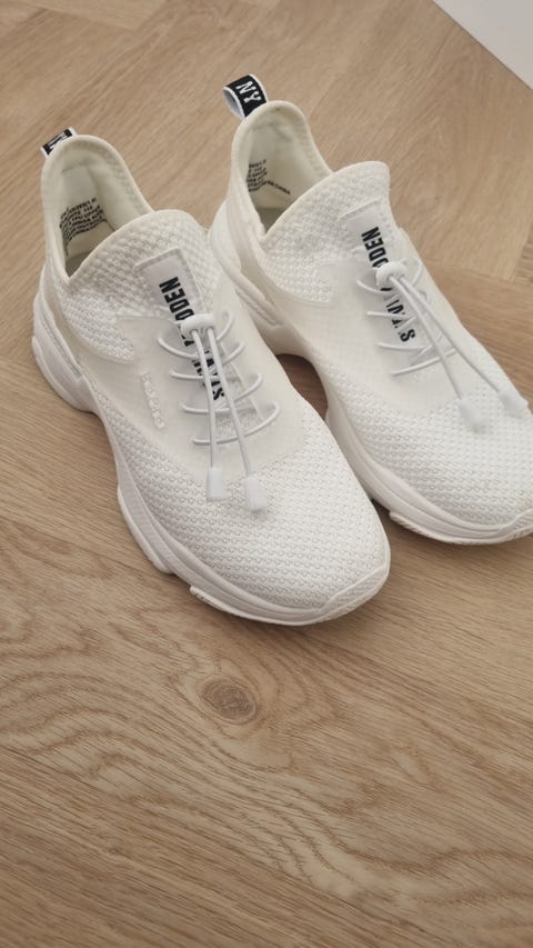 Ny Flot MADS NØRGAARD bluse i blå og hvid med kort ærme, fleksibel stof, str. L.