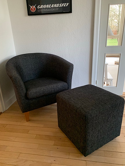Lænestol med tilhørende puf