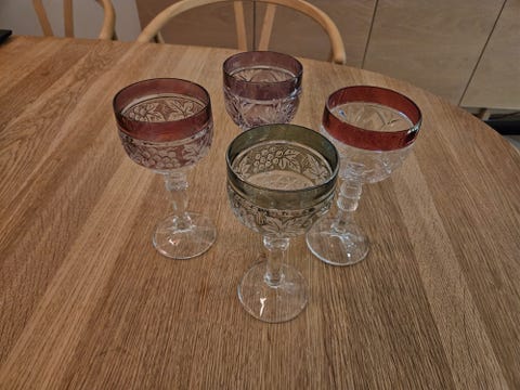 Gamle rødvins glas uden navn