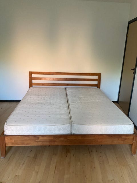 Seng med komfort lamelbund.