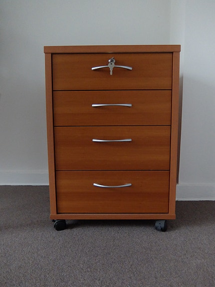 Skab i træ med 4 hjul