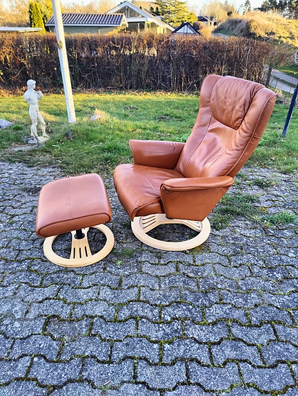 Hjort Knudsen Cognac Lænestol og Puf