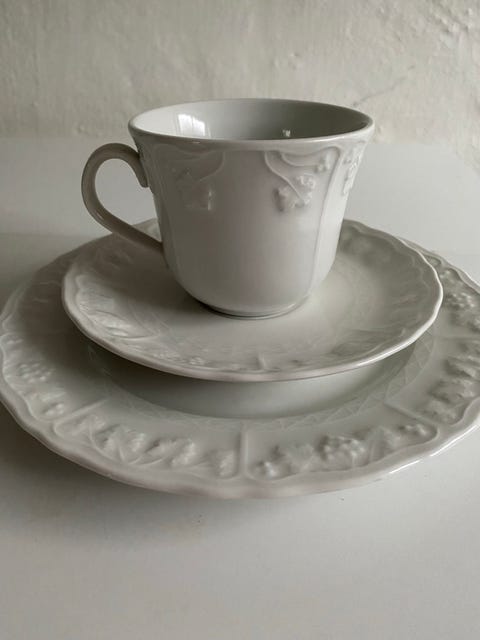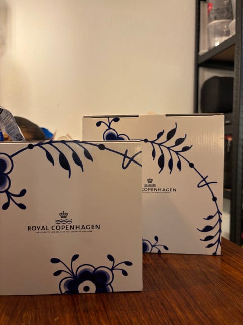 Royal Copenhagen Musselmalet Riflet Tekop og Underkop Sæt Blå og Hvid Porcelæn