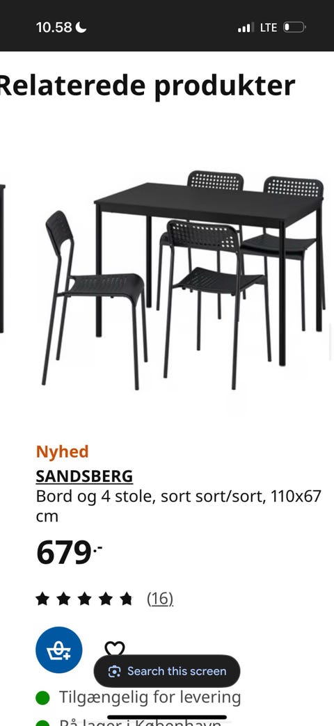 Et bord og 4 stole