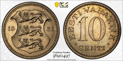 Estland. 10 Senti 1931 - NGC MS64