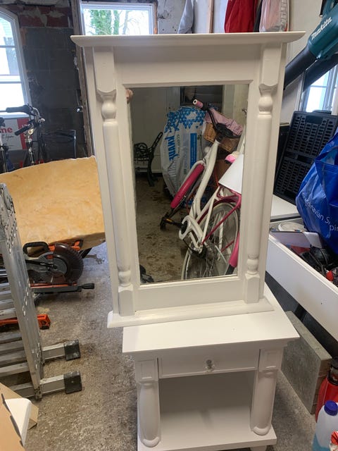 Hvidt træspejl med hylde