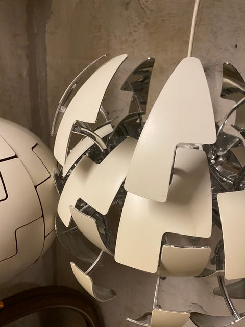 Space Age-kobberpendel, designet af Werner Schou for Coronell Elektro i 1960'er