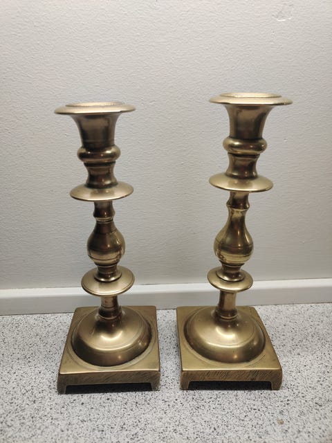 2 gamle lysestager , Messing